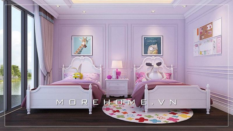 Thiết kế phòng ngủ bé gai đẹp, cửa sổ được bố trí hợp lí kích thước lớn tạo cảm giác cho căn phòng luôn thông thoáng tràn ngập ánh sáng tự nhiên