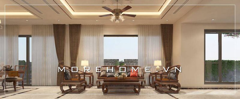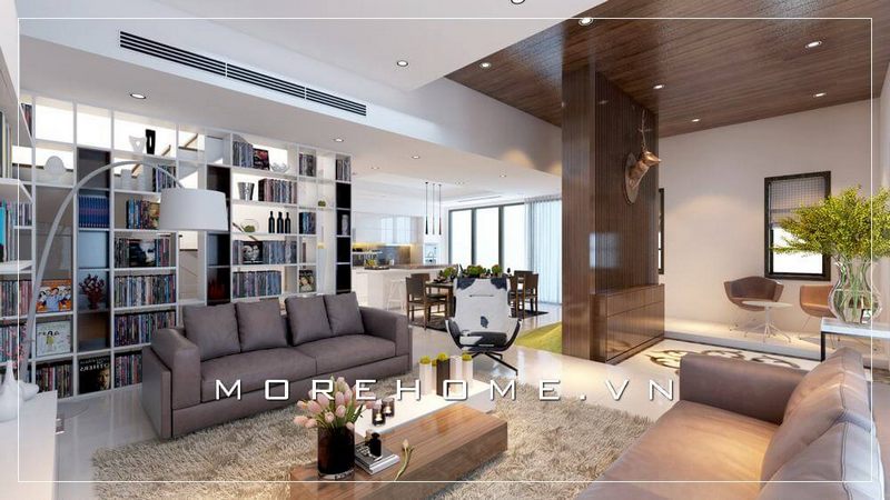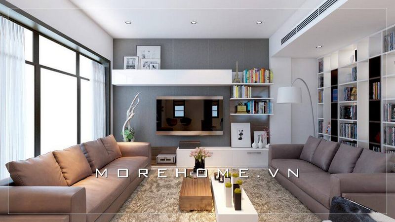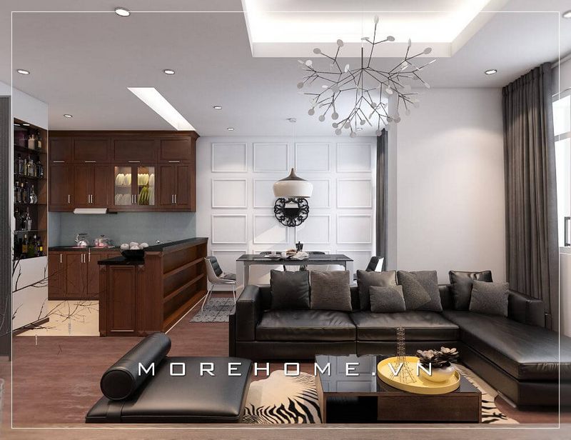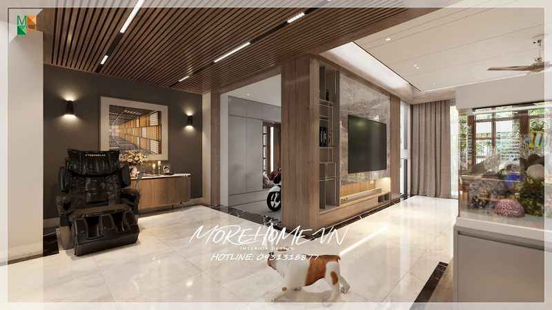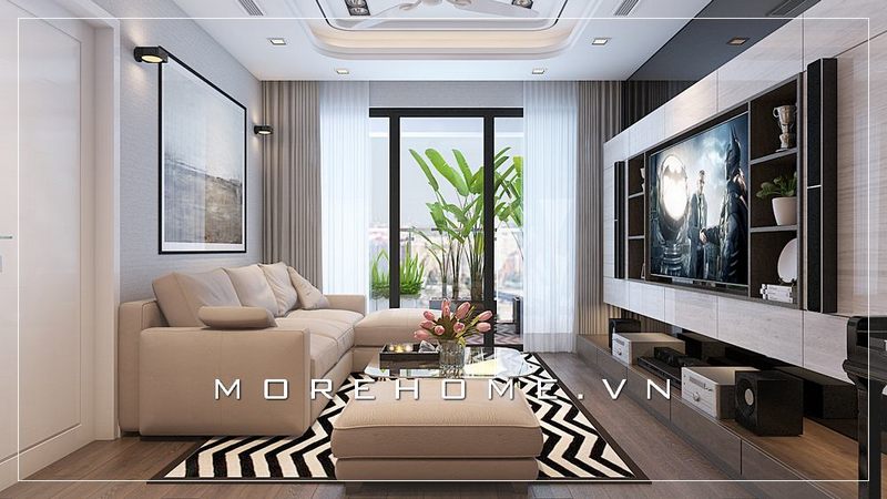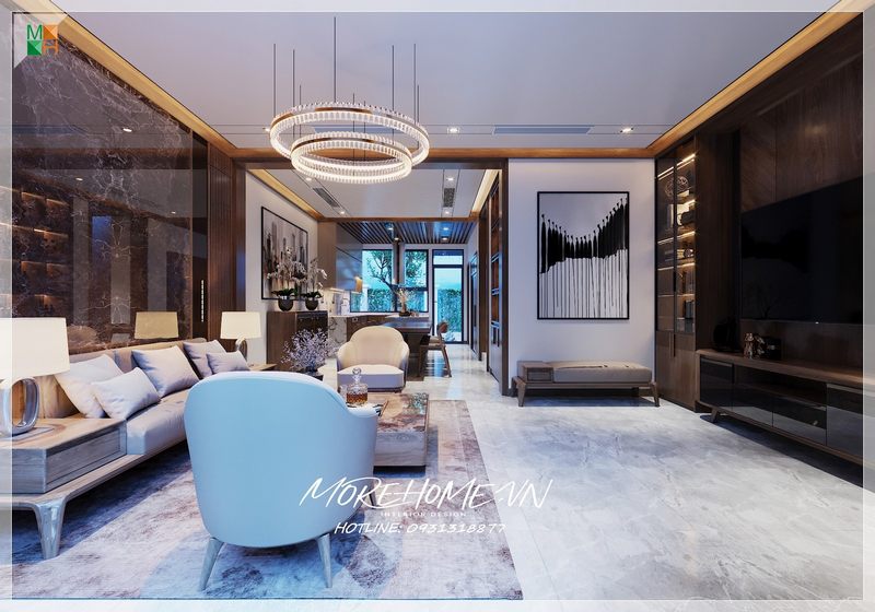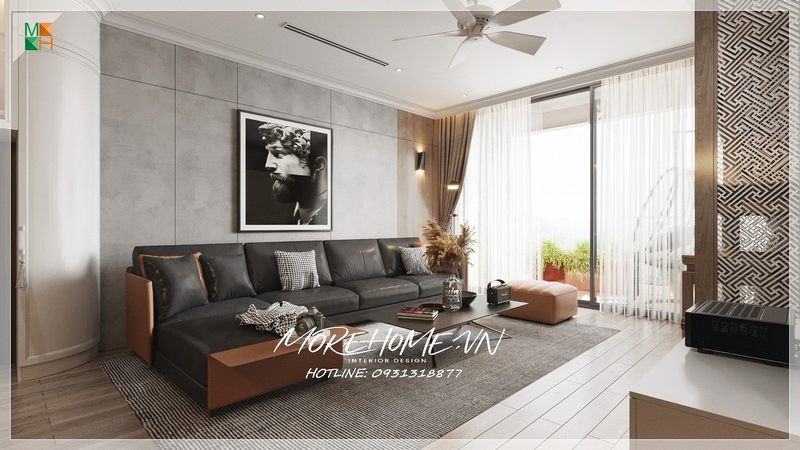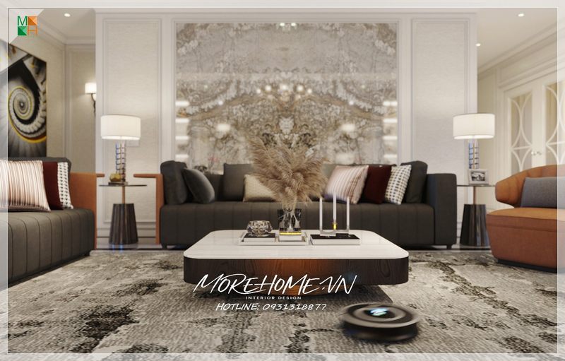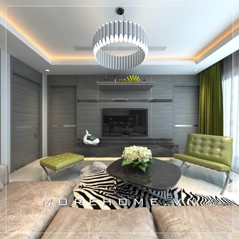 Mang phong cách hiện đại, đầy tiện nghi của phòng khách công trình thi công từ bản vẽ thiết kế nội thất của các kiến trúc sư Morehome chung cư nhà phố, biệt thự cao cấp.