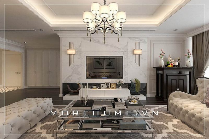 Thiết kế nội thất phòng khách phong cách tân cổ điển mang đến vẻ đẹp sang trọng và quý phái