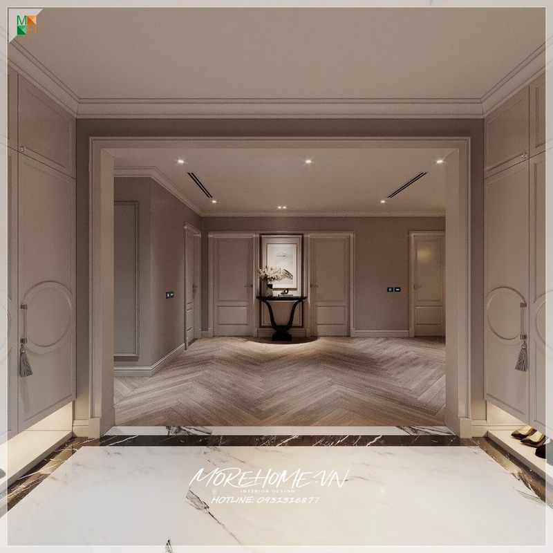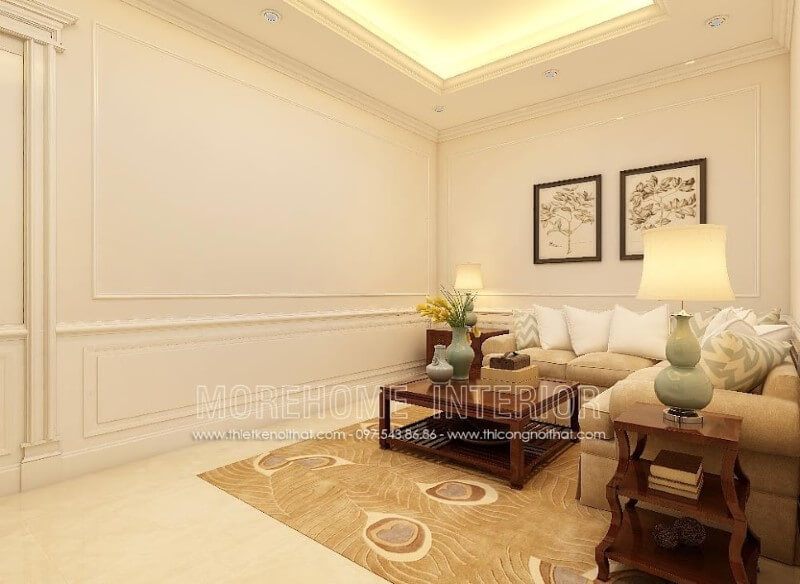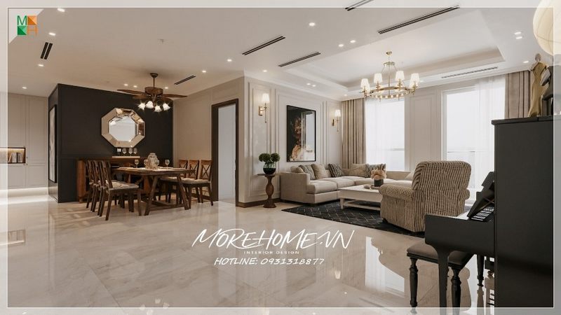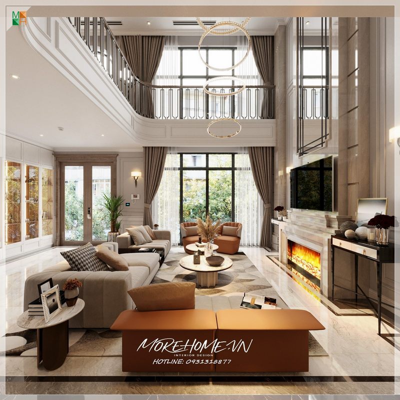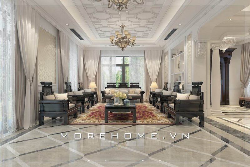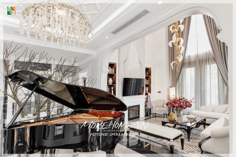 Đường nét tân cổ điển được thể hiện trên mọi không gian phòng khách biệt thự