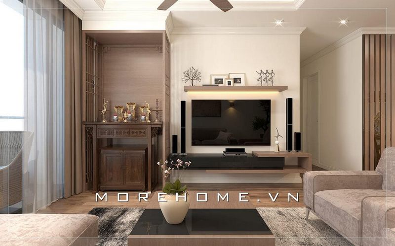 Mẫu thiết kế bàn thờ cao cấp cho phòng khách chung cư được ưa chuộng hiện nay